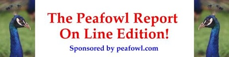 The latest news in the world about peacock/peafowl from The Peafowl Report, The On Line Edition, sponsored by, The Peacock Information Center, peafowl.com